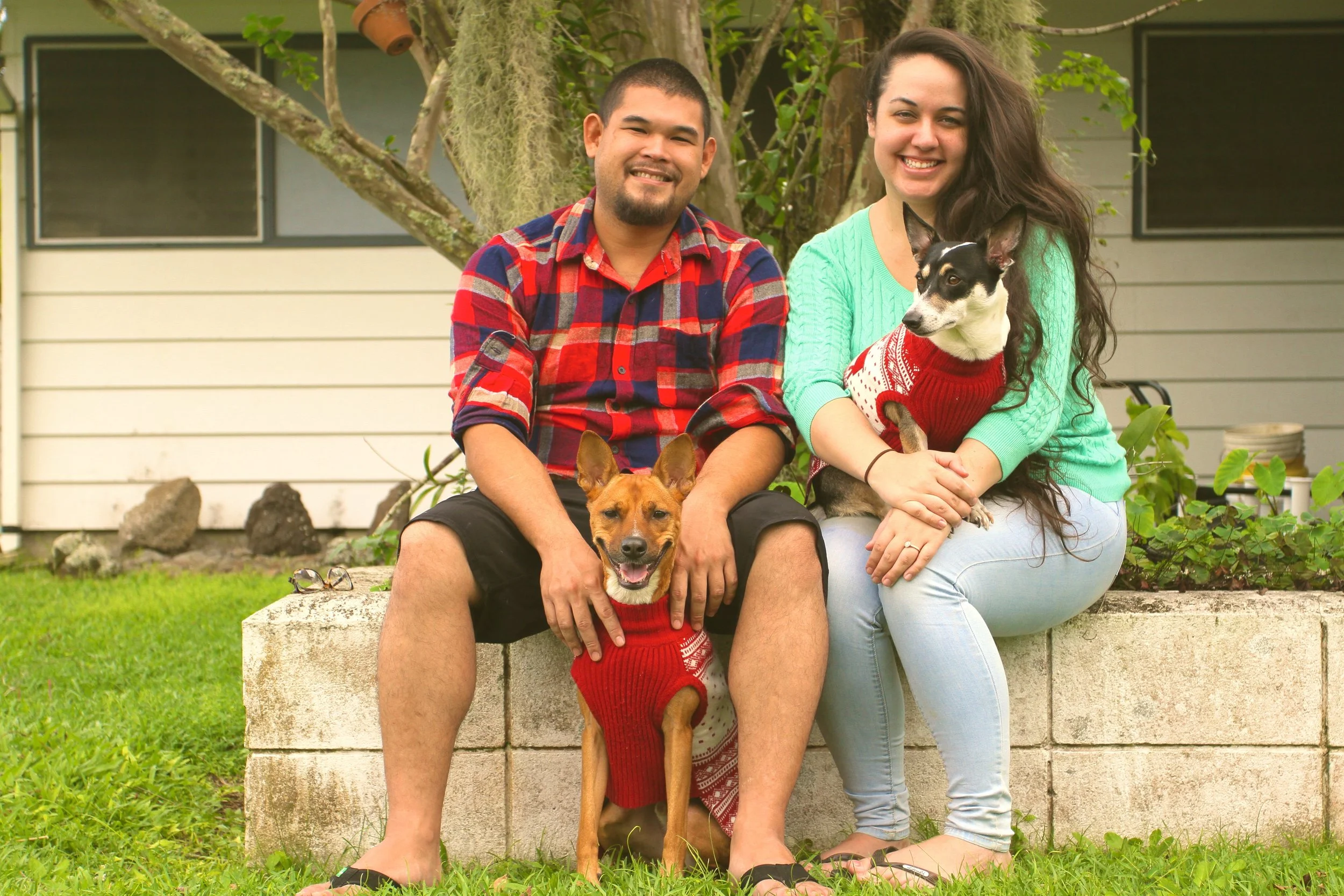 Our lives are kept busy with two dogs, Kuma & Mochi, and two chinchillas, Moomoo & Button. If we're not outside with the dogs, at the beach or hiking in the windward forests, we're at home snuggling up, playing video games. We haven't had much time together recently, so we're sure to make it count. You could say we're one happy family!